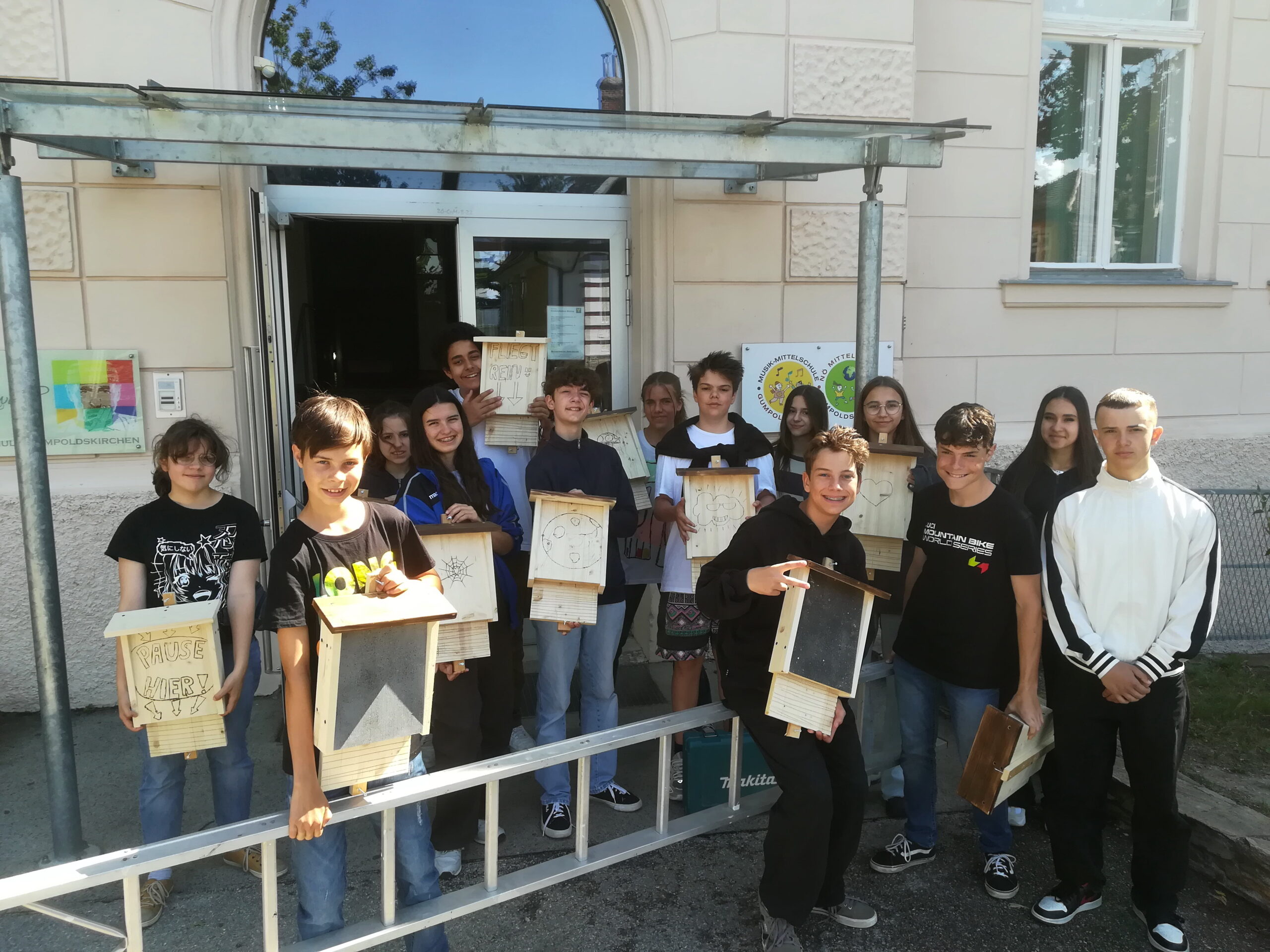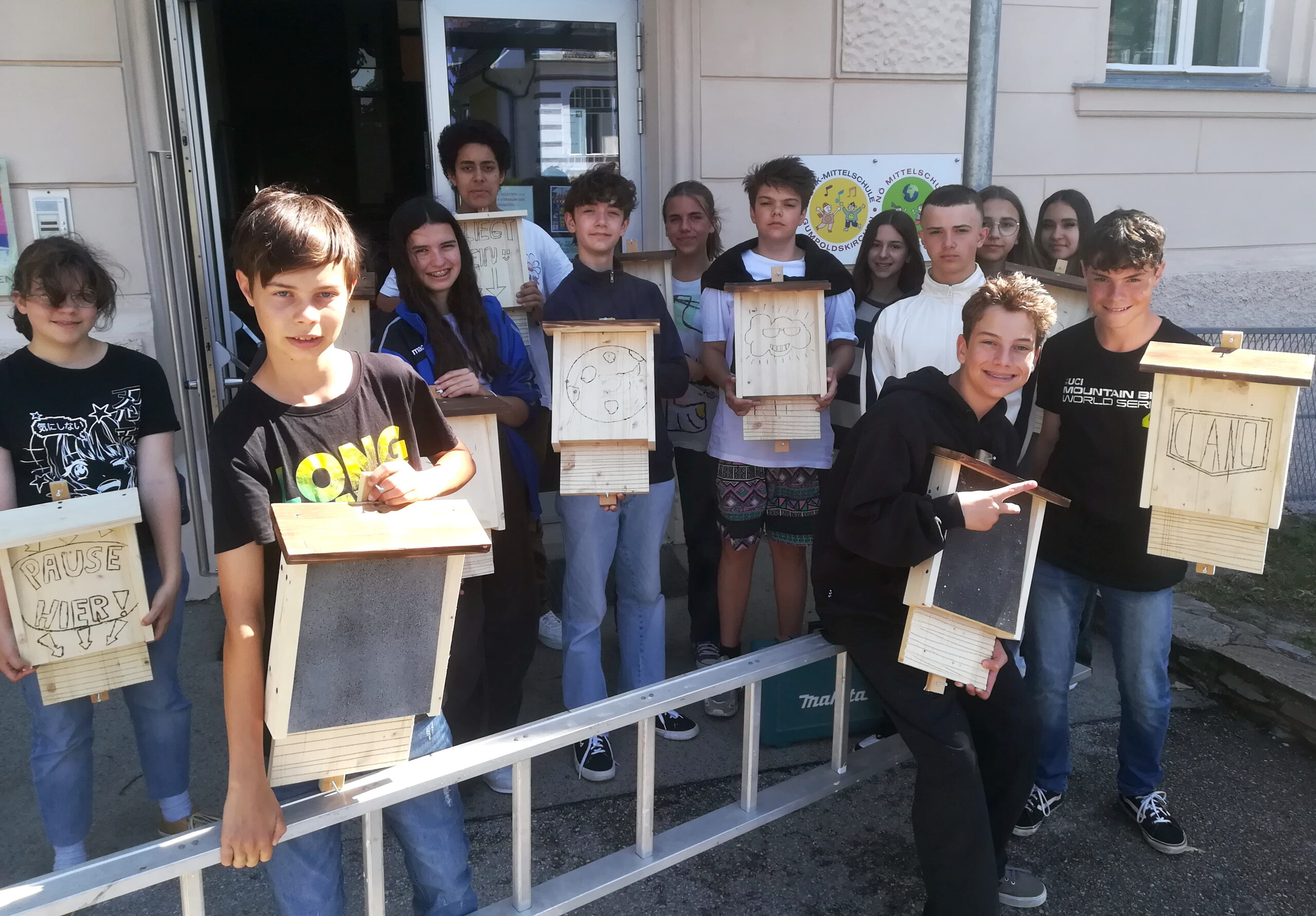 Im Werkunterricht wurden von den Schülerinnen und Schülern der 4a Fledermausnistkästen hergestellt. Das Material war von der „Natur im Garten“ zur Verfügung gestellt worden und als „letzte Werktat“ sind daraus unter Anleitung des Werklehrers, Thomas Fux, individuell gestaltete, schmucke Nistkästen für Fledermäuse – äußerst nützlichen Tieren, deren Lebensraum leider immer mehr eingeengt wird – geworden.